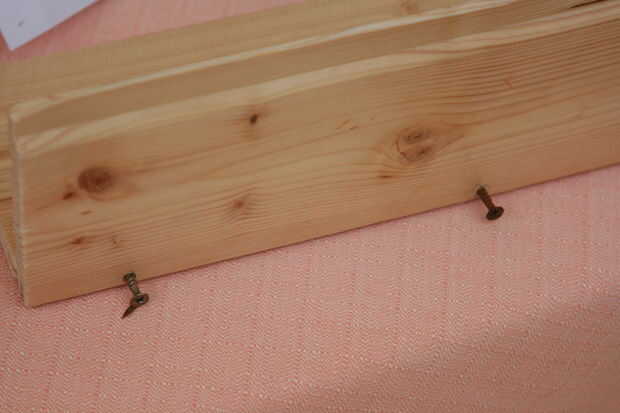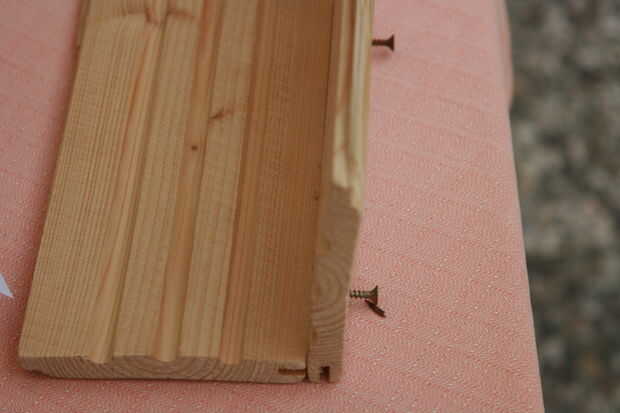 En la parte inferior de uno de los tableros largos perforé tamaño de agujeros de tres 3. El borde de la segunda placa fue atado a este con algunos tornillos viejos.