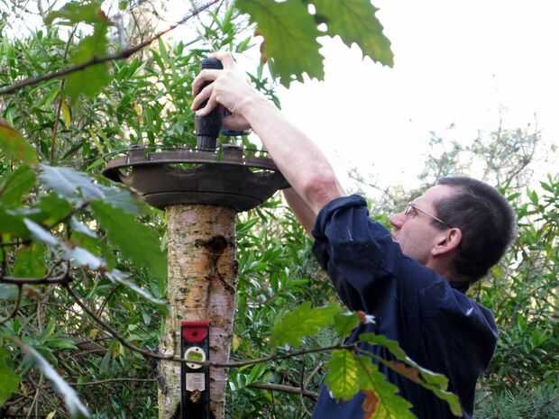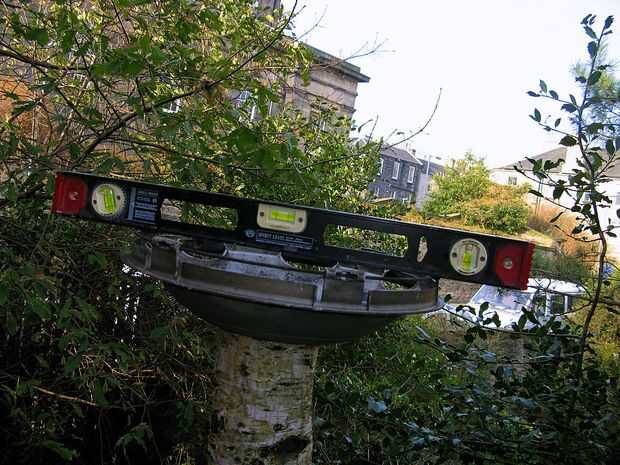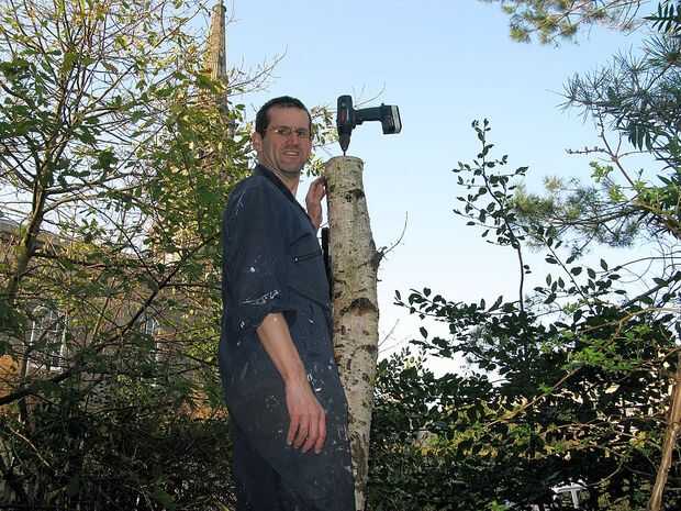 Ahora falta hacer un agujero para que el baño del pájaro puede fijarse firmemente en su lugar. Así podría perforar un agujero en uno de los tapacubos del taxi al mismo tiempo...