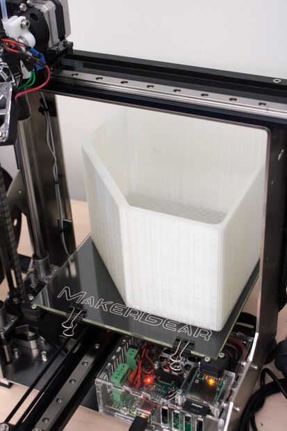 Cabe destacar que nuestra MakerGear M2 es capaz de mucho más fina calidad de impresión que mostrar estas piezas. Estas son todas las extrusiones de 0,3 mm y hemos conseguido impresiones precisas con 0,05 mm. Sin embargo, se trata de una pajarera. Impresión rápida era una prioridad y más gruesa protuberancia también reduce la probabilidad de las fronteras de la fusión de filamento separar cuando expuestas a inclemencias, etc.. También imprimen algo caliente para fortalecer la fusión bonos, que, combinado con los factores de llenado baja, magnifica las imperfecciones visibles en superficies impresas horizontalmente creando esencialmente palmos sin soporte, ligeramente caídos, entre soportes internos. De todos modos, todo lo que realmente hace es dar las partes de la pajarera una textura interesante--nada inadecuada para una obra de arte.