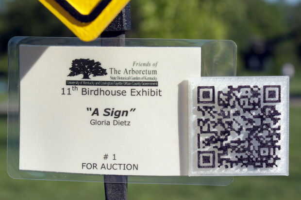 El código QR no imprime limpiamente en tamaños muy pequeños, pero esta impresión de buen tamaño muy inferior tomó 30 minutos. De hecho, tomó más tiempo para cortar el archivo asignqr.stl que to imprimir. Fue impreso en claro PLA, que dejé sin pintar para enfatizar el hecho de que el signo de QR, añadido a la muestra sobre un signo, es impreso en 3D. La superficie superior del código QR fue ennegrecida con un marcador permanente.