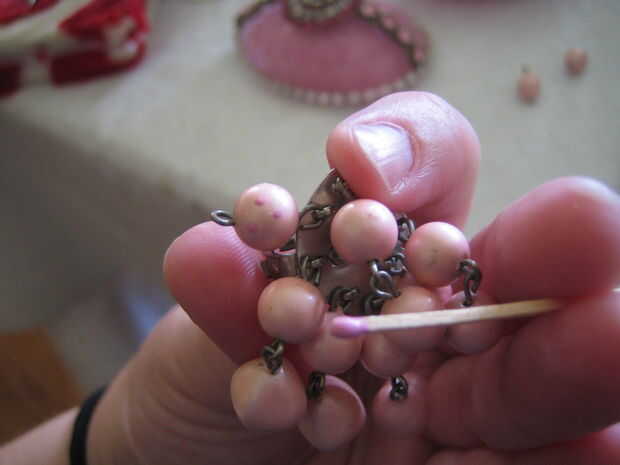 Pegué los huevos con el pegamento e6000 y puse el borde con más metales por debajo de ella, así que sólo tuve lindo metal muestra de los granos. Oriéntelos para que complementa su pintura y la forma de las bolas/huevos! :)