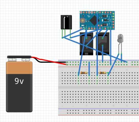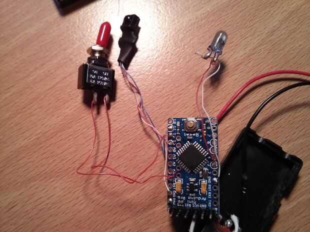 El código que vamos a usar viene automáticamente configurado para utilizar el construido en LED en el pin 13 para notificar el uso cuando nos estamos recibiendo/enviando código. Si uno estaba tan inclinado, podría añadir un otro LED del pin 13 a tierra, pero con el BIRRD ser un dispositivo de trampas y todo, yo no quería cualquier luces brillantes para que otros puedan ver.