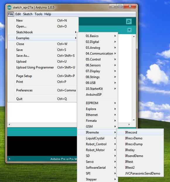 Una vez que tienes la biblioteca instalada, cargar el sketch 'IRrecord' y eres bueno para ir!