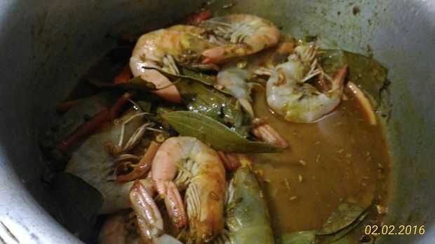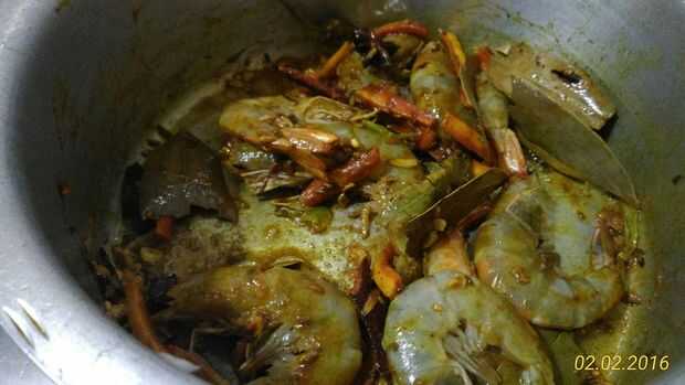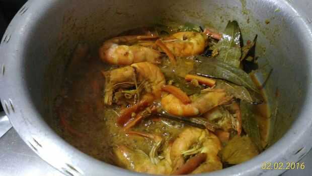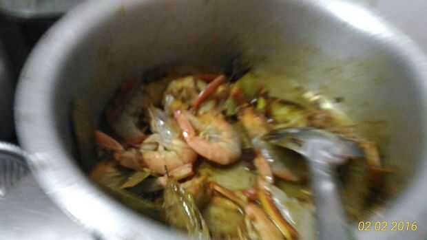 luego añadir langostinos y revolver bien para que todos masala cubrirá gambas.