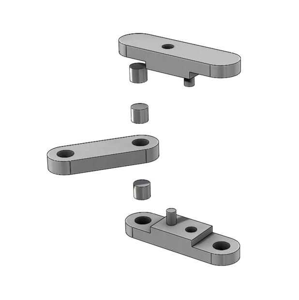 Cada bisagra se compone de tres partes: 2 x Base 1 x varilla. El elemento básico se imprime dos veces.
