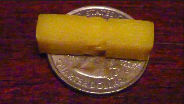 Una abrazadera de cable para un próximo proyecto de diseño, me encontré un experimento para encontrar las bisagras práctico mínimo mi impresora es capaz de producir. Rara vez imprimo más pequeña que la resolución de 2mm, por lo se convirtió en mi control. Todavía no sé cuál es el límite inferior de tamaño, ya que dejé cuando mi parte de la prueba hasta 1/4" cuadrado x 1" de largo. Me di cuenta que era como probablemente tan pequeña como siempre vamos a usar.