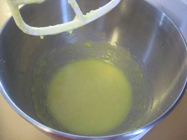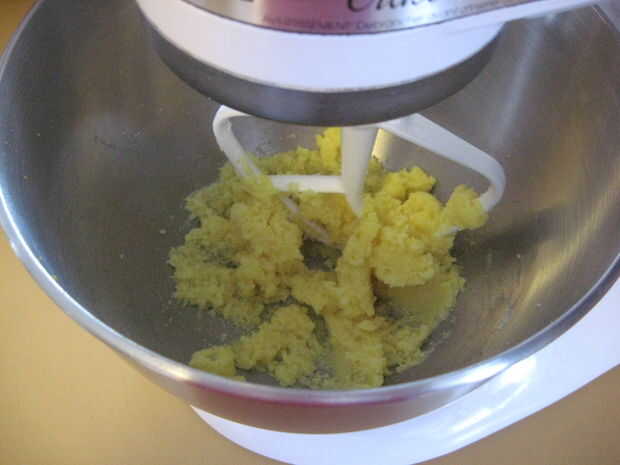 Después de que la mantequilla es crema en el resto de ingredientes, mezclar los huevos uno a la vez, batiendo bien después de cada uno. Recuerde usar dos huevos enteros y sólo el blanco de la tercera.