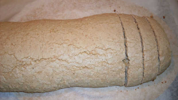 Con un cuchillo de sierra para cortar el registro de como Mostrar en imagen y reposar sobre una rejilla (si tienes, esto es asegurar incluso la hornada) y hornear por 25 minutos.