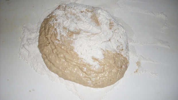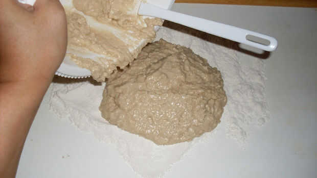 Revuelva en la harina hasta que quede suave; la masa estará pegajosa.