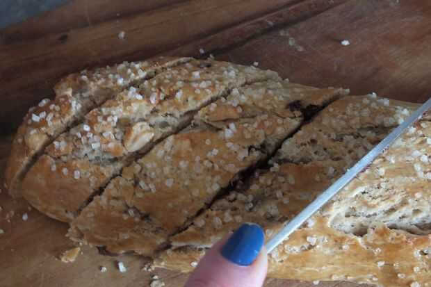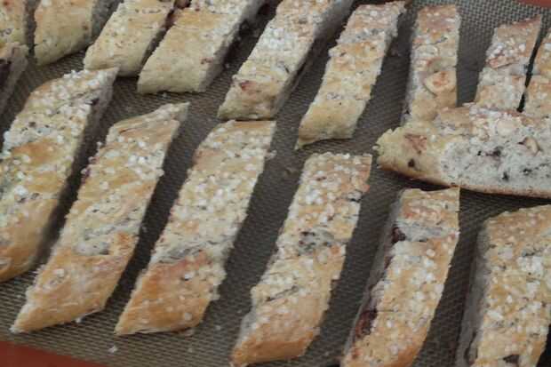 Colocar cada registro en una tabla de cortar y con un cuchillo de sierra corte diagonal 3/4" rodajas. Rinde aprox. 24 galletas por registro.