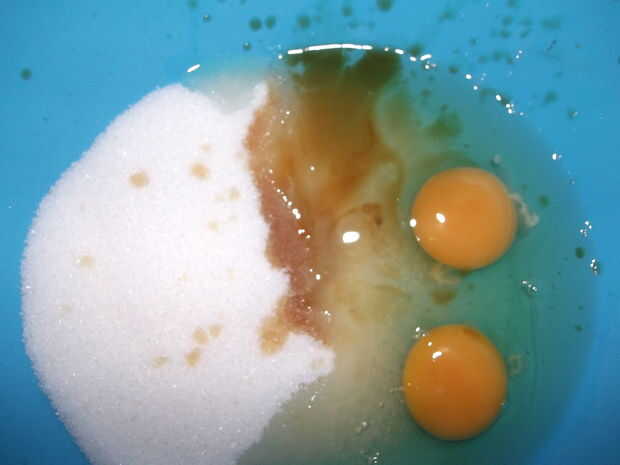 Paso 2: batir el azúcar, huevos y vainilla