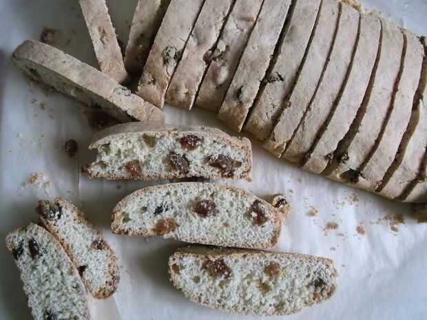 con arándanos rojos y verdes pistachos, llenas del aroma de vacaciones de cardamomo con una fuerte patada de orange, estos biscotti estacionales es perfectos con un café por la mañana, té del mediodía o después de cenarme Levante.Un biscotto es un it