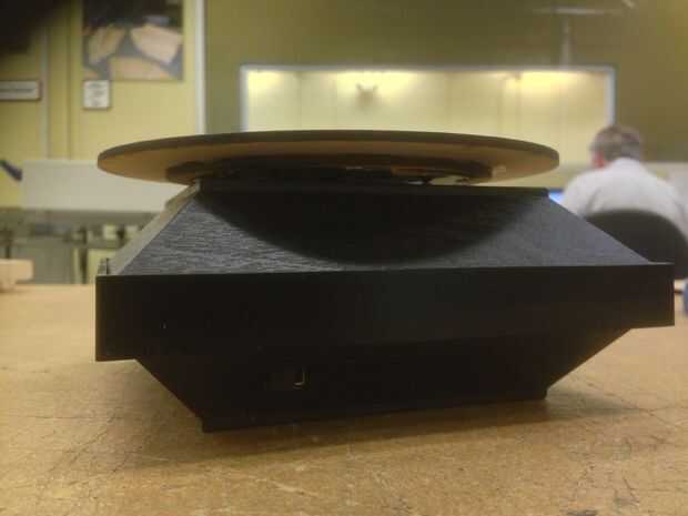 Hizo un plato de sacrificio para colocar sobre el plato de incorporado. También hizo un anillo que éstos alinear bien. Puede ver los bordes de la 1/8" " apriete 'n estornudar " plato y el anillo que estaban conectados y pegado con un par de tacos.