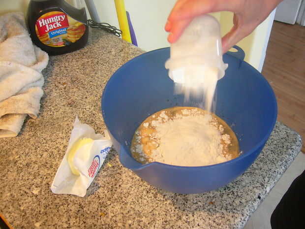 1 botella de is1.5 tazas de cerveza stout chocolate. Mezclar una cantidad adecuada de mezcla de panqueque según su paquete. Luego, agregar más mezcla seca (removiendo) hasta obtener el espesor deseado. Añadimos 3/4 de una taza en la parte superior las indicaciones pedido.