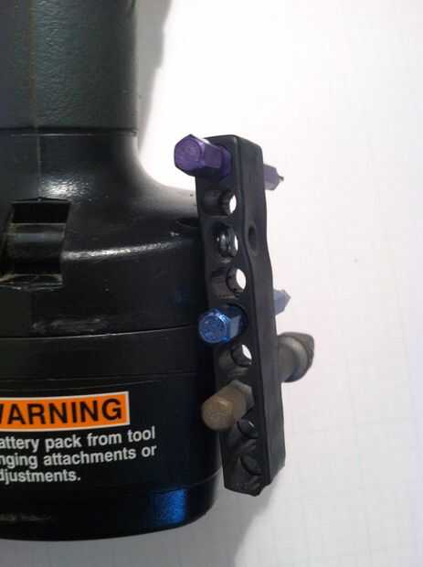 El truco es encontrar un tornillo con una longitud adecuada para sostener la revista. Fue la más larga que pude encontrar en el azul o el naranja de las ferreterías 1-1/2". Esto estaba bien para el Ryobi, pero el artesano requiere algunos trucos más. Tuve que rosque el tornillo en un ángulo en una de las paredes de la revista para que la cabeza del tornillo de ajuste en el agujero existente de bit. Luego con un destornillador pequeño, era capaz de atornillar en el resto del camino a través del orificio perforado vacíelo enfrente la dedicada. Obviamente, un tornillo más largo habría sido más ideal.