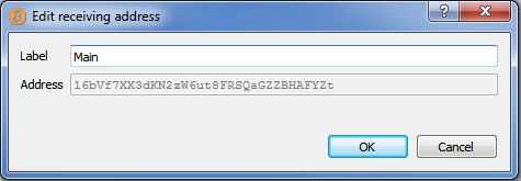 Cuando se hace descargando los bloques (no te preocupes de lo que esto significa; no es importante), ir más a la pestaña de "Recibir monedas" para arriba en la parte superior. Haga clic en el elemento de lista existente uno y haga clic en "Editar". Le dan la etiqueta "Principal" y pulsa OK. Haga clic en él otra vez y haga clic en "Copiar dirección". Esta es la dirección única que le dio su cartera. Es donde se reciben monedas en pasos posteriores.
