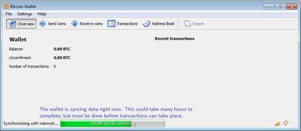 Cuando esté hecho, abrir el software desde el menú Inicio. Tendrá unas horas para descargar todos los bloques a su ordenador. Usted debe sentarse y esperar durante este tiempo (ver fotos).