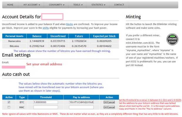 -Establezca su umbral de pago automático en una cantidad razonable. Mina se encuentra a 1 BTC (aprox. $10). Esto significa que cuando yo mía 1 BTC, se reciba a mi billetera bitcoin, al igual que la prueba, pero con un mayor número de bitcoins.
