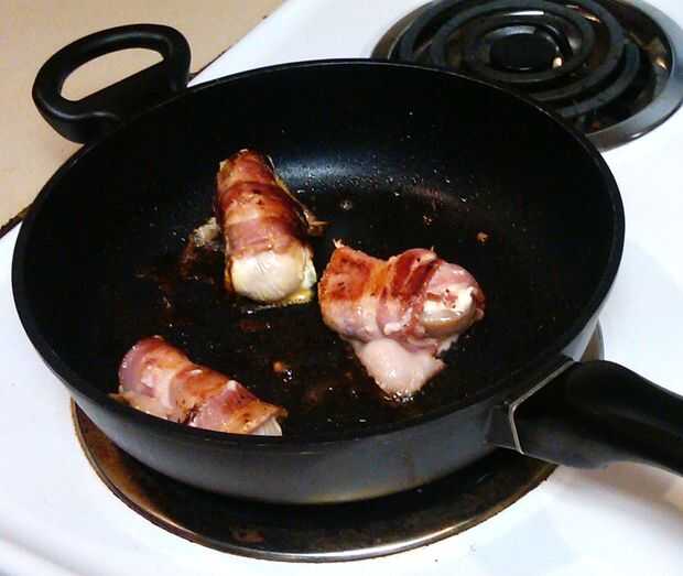 Paso 19: Freír las mordeduras del pollo jalapeño envueltos en tocino