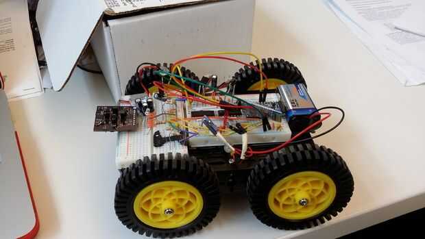 Broca contiene un circuito controlador de motor simple con dos puentes h para controlar velocidad del motor. Se incluyeron algunas otras características para hacer poco actuar un poco más perro-como. Incluimos un circuito de reproducción de audio que ladra cuando algo consigue cerca de su dueño. Cuando algo realmente cerca de la BitBeacon, todos los sensores de luz en la BitReceptor son a máxima intensidad. Cuando esto ocurre, tenemos un circuito de lógica simple que activa el circuito de reproducción de audio y poco responde con una corteza! Además, con un sensor piezoeléctrico, poco puede también responder también a ladrar cuando acarició. Tan pocos fresco características para hacer poco más perro-como. También queremos añadir comandos de voz y cosas así, así, pero creemos que es un muy buen comienzo!