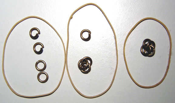 Tomar un segundo anillo abierto y meter los mismo dos anillos cerrados sobre ella. Cerrar el anillo abierto.
