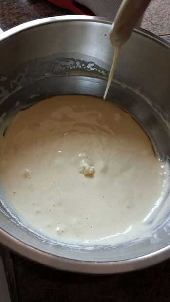 Sacar el tamiz y cernir lentamente en sus 5/4 tazas de harina (mezcla entre es mejor pero no es obligatorio si su coordinación de manos no es para él). Continúe batiendo hasta llegar a la consistencia deseada en la última imagen de arriba.