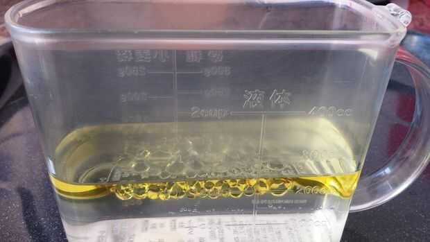 Decidir la proporción de agua y aceite (como añade hasta 5/4 de taza; Fui con 3/4 taza de agua y 1/2 taza de aceite) antes poco a poco añadiendo en como mezcla.