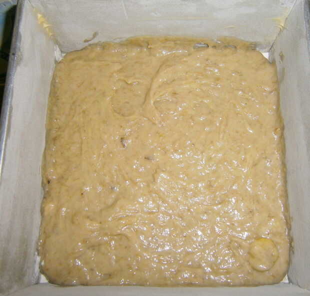 Receta: para torta de 1 florIngredientes:2 grandes y maduros bananas, peladas y completamente machacado con un tenedor2 orgánica huevos, golpeadas sueltos1/2 taza de azúcar flor del cocoalmendra entera sal 1 taza de mantequilla, los aceites bien mezc
