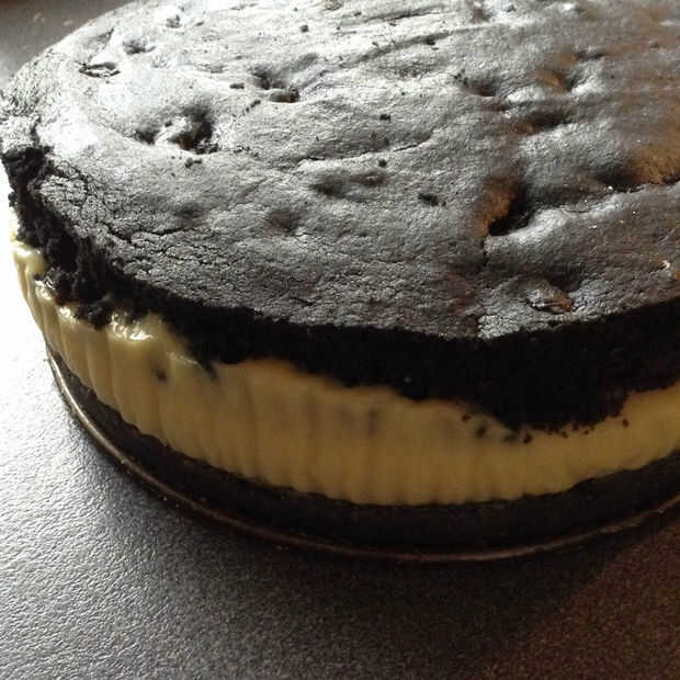 Vierta el pudín de naranja (Foto 3) y ponga el otro pastel inferior inferior hacia abajo en superior (cuadro 4).