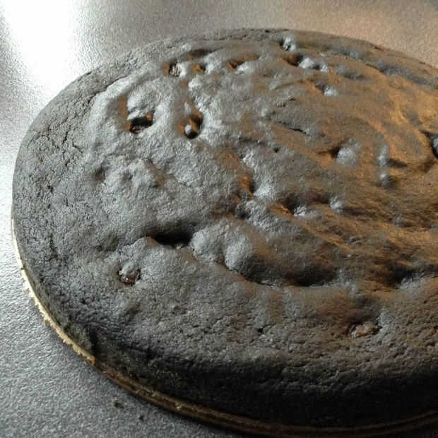 Para montar el pastel, retire los fondos pastel de las cacerolas. (Cuadro 1) Uno de mina era más grande que el otro, así que tuve que recortar los bordes.