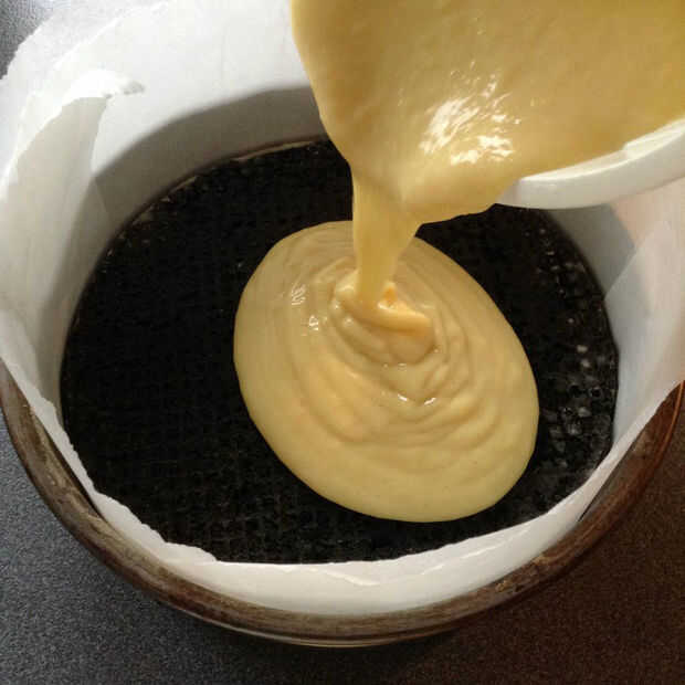 Coloque una parte inferior parte inferior hacia arriba en un molde para pasteles (el más pequeño si usando dos diferentes tamaños de ollas). (Foto 2) Esto es porque la parte inferior tiene más textura, por lo que el pudín tiene algo que conservar.