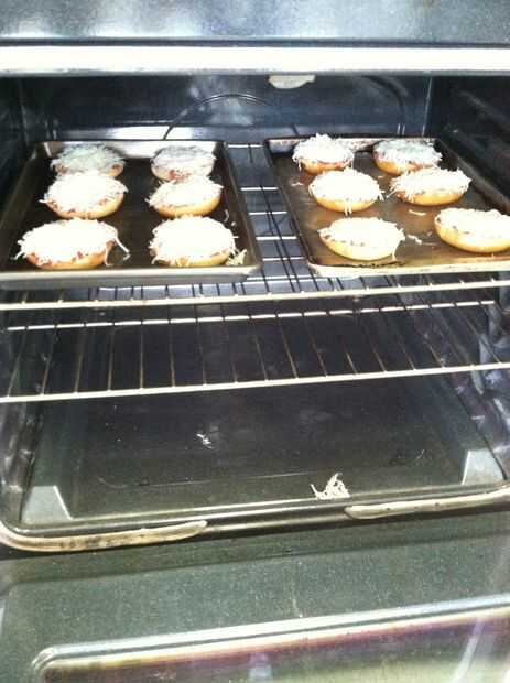 Hornear bollos de pizza en el horno a 350 por 15-20 minutos.