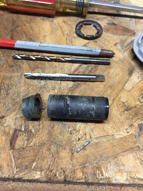 A continuación necesitarás cortar el buje que se rompió lejos, para estar al ras de la rueda. Esto permitirá que las ruedas giren tan libremente cuando las arandelas están aseguradas. He deslizado el buje en la rueda y marcado en el extremo roto, así que tuve una buena sección para utilizar como el buje en el eje de rueda para mi arreglo DIY.