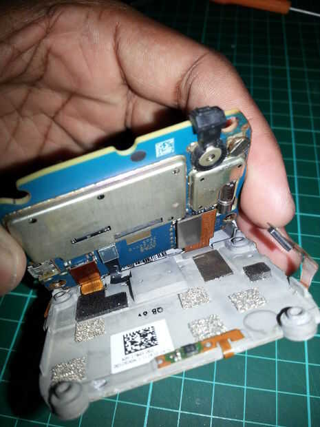 6. ahora debería ver la placa base. Antes de retirar la placa madre, que quería medir el voltaje en los terminales de la batería con la batería enchufada para eliminar la posibilidad de un terminal defectuoso. Así que poner la batería en y mida el voltaje en los terminales. Para mi sorpresa, mi medidor lee 0.00V que es muy raro desde el circuito de apagado, la batería estaba en 4.03V.
