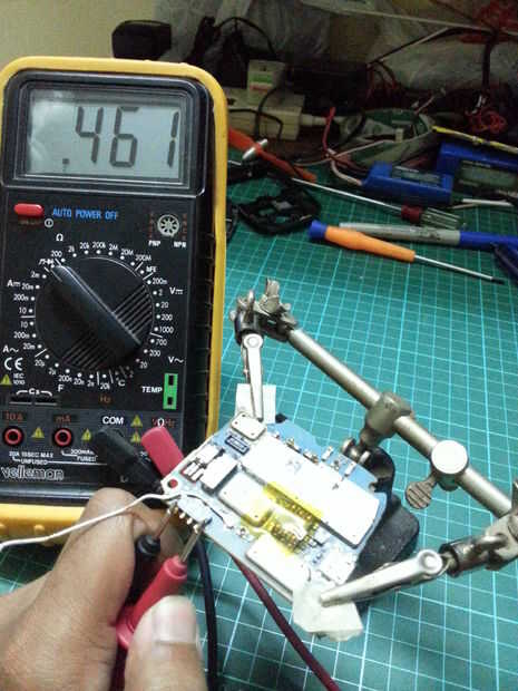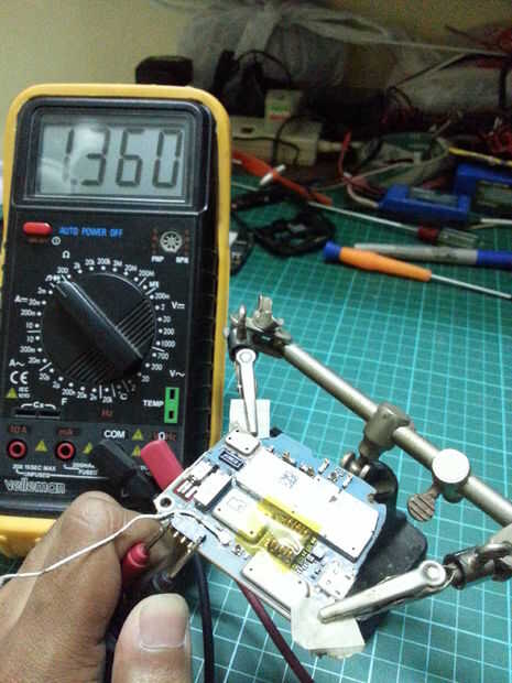 Después de quitar el condensador malo, seguir adelante y hacer una continuidad prueba en los terminales de la batería. No debe haber ningún cortocircuito. Por el contrario, el multímetro debe leer unos 1.35V cuando la punta de prueba positiva está conectada a la sonda terminal y negativo positivo de la batería al terminal negativo de la batería.