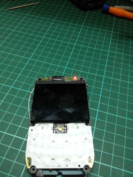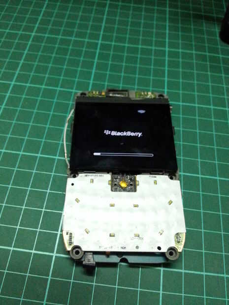En este punto, se puede probar si el teléfono arranca para arriba. Conecte los cables de cinta nuevo y conecte unicamente la batería del. Usted puede dejar la bola de pista desconectada.