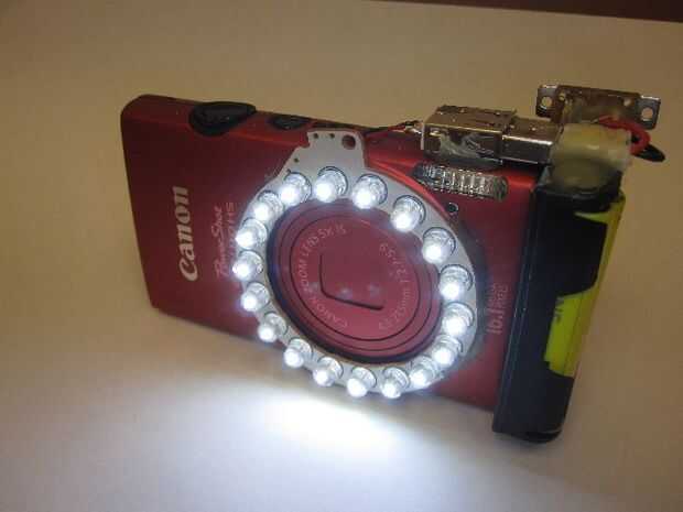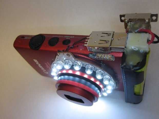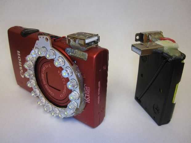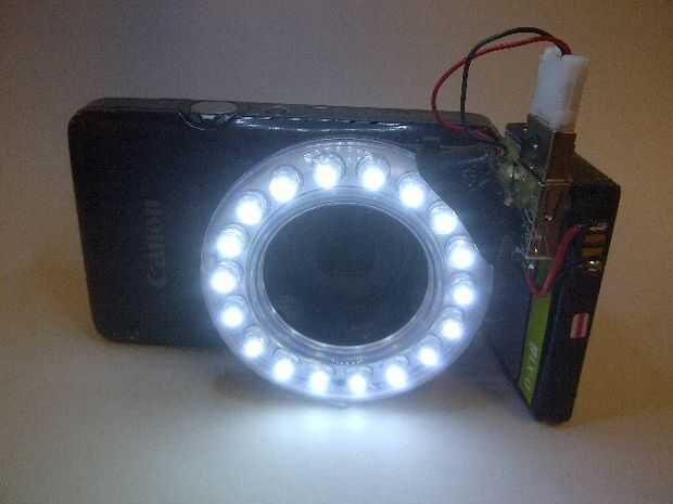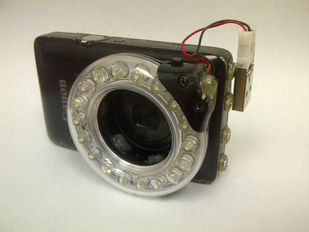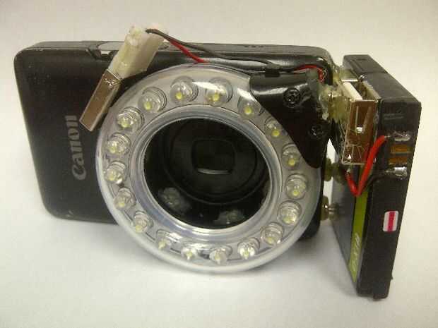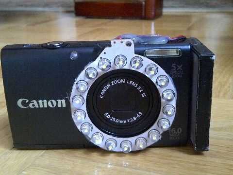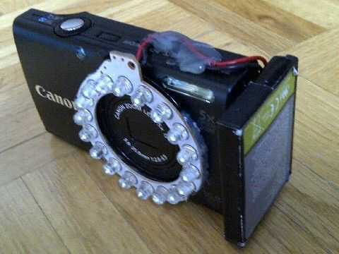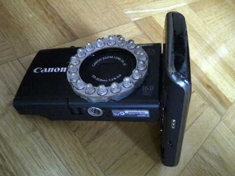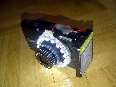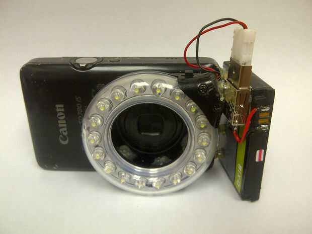 Había basado los hacks en Canon y ya sea mediante una batería de la Blackberry como fuente de energía (3.7V) o 3 baterías AAA (4.5V). El anillo de luces que hackeado se diseñaron para funcionar en USB originalmente que suministran 5 V, pero todavía trabajan bien en 3.7V... de hecho, creo que no son tan brillantes y realmente las imágenes parecen mejores, ya que no son como los colores lavados.