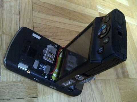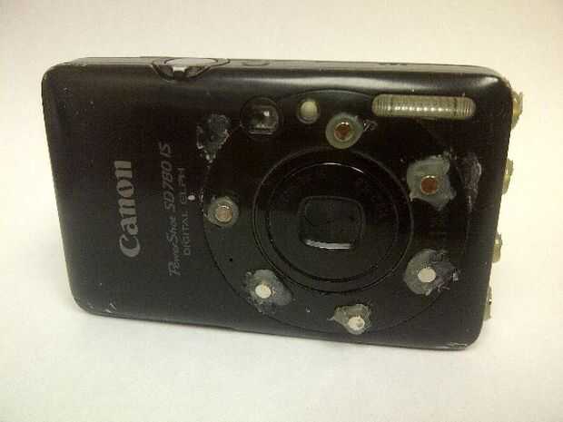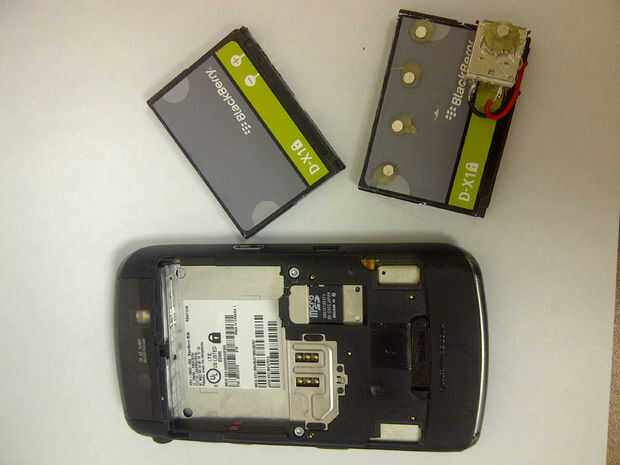 3. negro Canon Powershot 3400IS + batería Blackberry D-X_1 cableados en forma permanente.