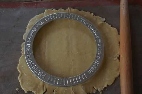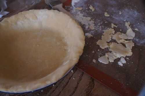 Preparar la superficie de trabajo con harina y extienda el primer disco. Traslado a la tartera de 9" y recorte los bordes a unos 1/4" de más de lo que desea. Meta que extra 1/4" pulgadas de bajo. Si usted desarrolla grietas o agujeros, use la masa exceso los parches. Refrigere por al menos una hora.