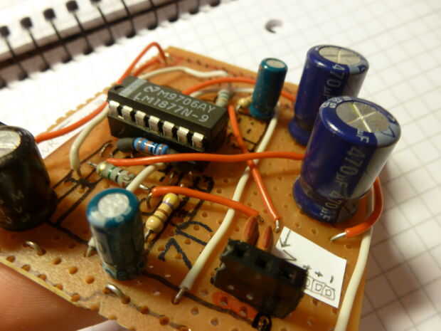 Tomé el LM1877 porque lo tenía puesta alrededor. Yo pude también ha tomado el LM380 o el LM386.