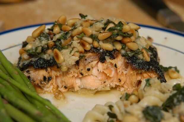 Piel de salmón, deshuesada, en. Hemos utilizado la mitad un salmón y fue suficiente para cinco personas.