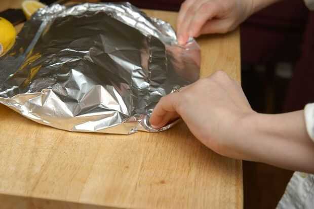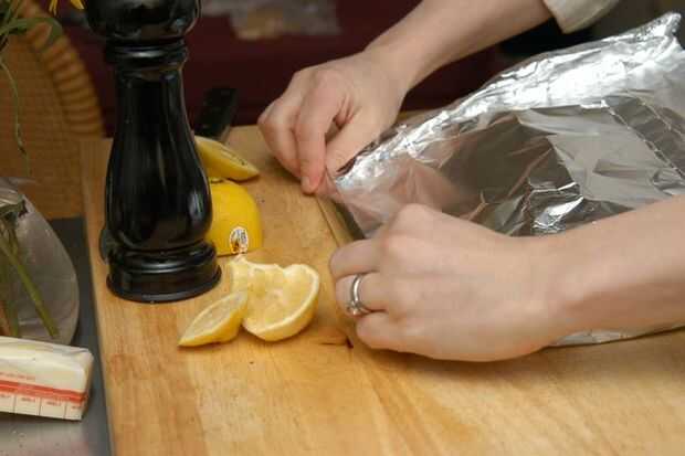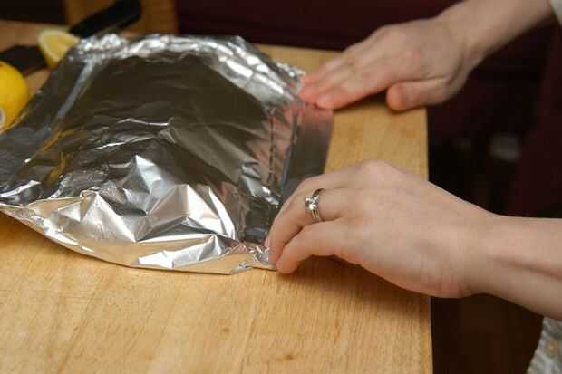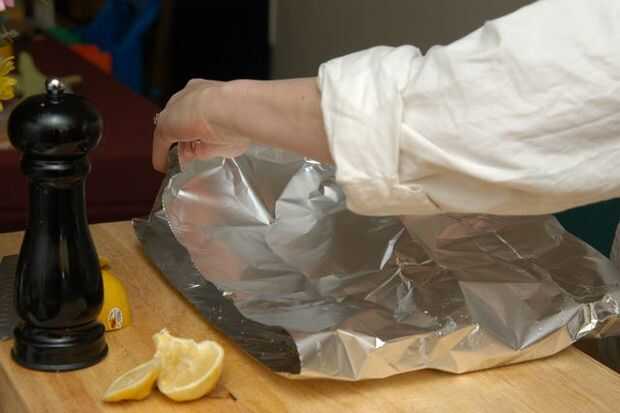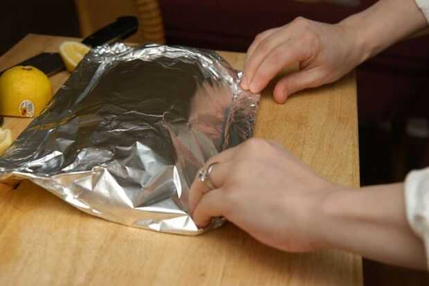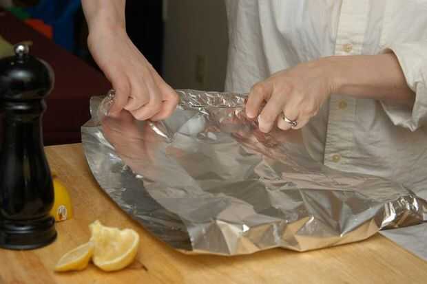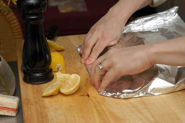 Doblar la hoja hasta la forma de un recipiente cerrado para cocinar al vapor.