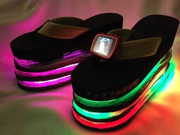 Es una plataforma de computación - y off zapatos de plataforma mundial. Hacer unos zapatos únicos en Harajuku y decirles a todos este es el último de Akihabara... bueno, las piezas de Adafruit.