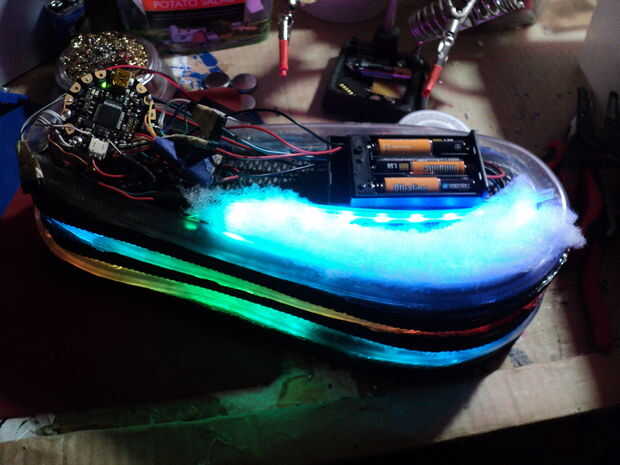 Añadir un sensor de presión activa de pie con velostat, inclinación bola interruptores, sensores de vibración o 9 DOF (grados de libertad) acelerómetro palpador para desencadenar patrones de luz.