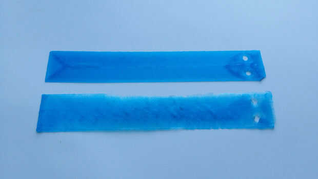 La hoja principal se imprime como una sola capa, por lo que necesita para que su impresora está configurado correctamente para que pueda lograr una buena superficie plana fuerte sin agujeros o grietas. Utilicé un método fill rectilíneas en esta parte para asegurar que los filamentos plásticos corrieron paralelos a los lados de la hoja. Esto permite que la hoja de doblar uniformemente sin torcer. Probé unos espesores de lámina diferentes con resultados diferentes.