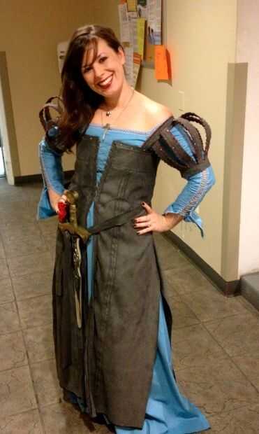 Consiguió la espada de un caballero de juguetes de Toys R Us y una correa de gamuza para alrededor de mi cintura. Emparejado el vestido con suéter gris medias y ante botas. Era un traje muy cómodo y caliente y tengo un montón de wows y segundo se ve en todos los detalles. En general estaba bastante contento con él!