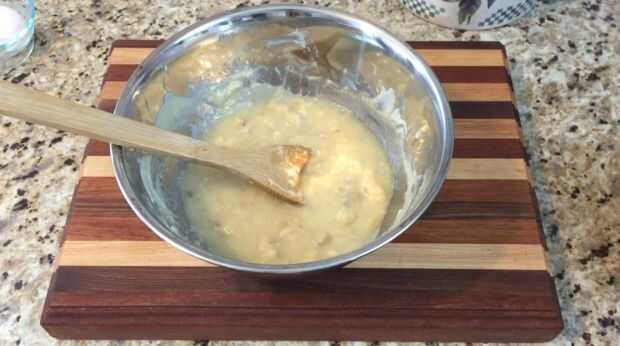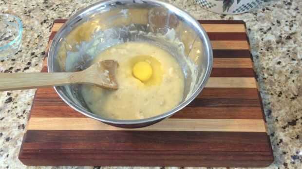 Añadir el puré de plátanos a la mezcla de mantequilla/azúcar/chocolate.