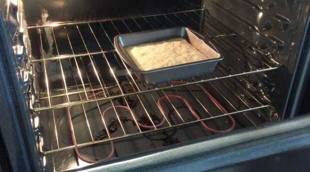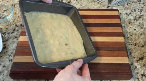 Pasar esta mezcla a un molde cuadrado de 8 pulgadas que ha previamente lubricada con spray de la hornada.