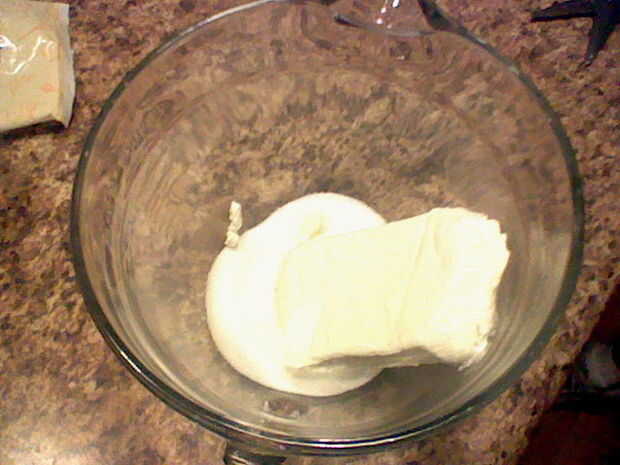 Ahora que tienes esta bien cursi azucarado, uniformemente dividido en 2 tazones. (poner la mitad en el otro bol y dejar la mitad en este.)