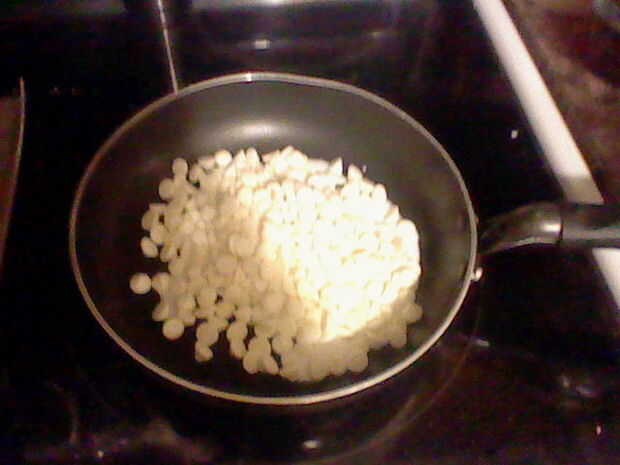 Poner sus chips blanco y leche en una cacerola o algo de microondas en este hotel, si vas a usar un microondas.  Y se funden a algo como la foto 2.